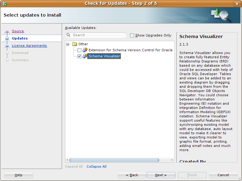 - Click Next and follow the instructions on the screen, at the end click Yes to restart SQL Developer.