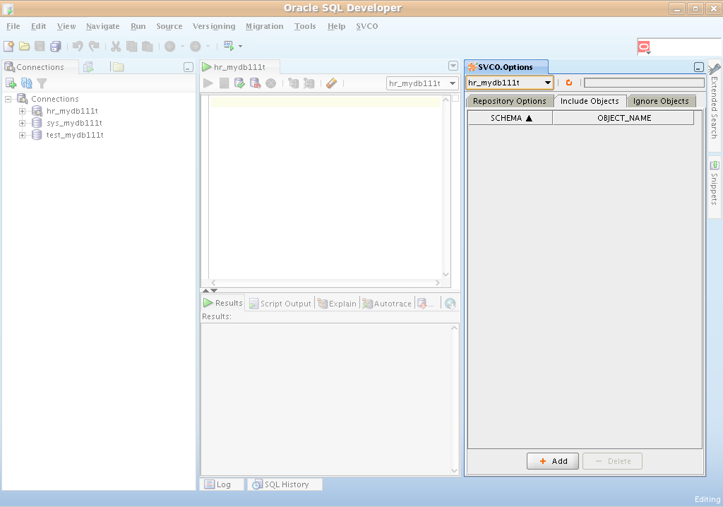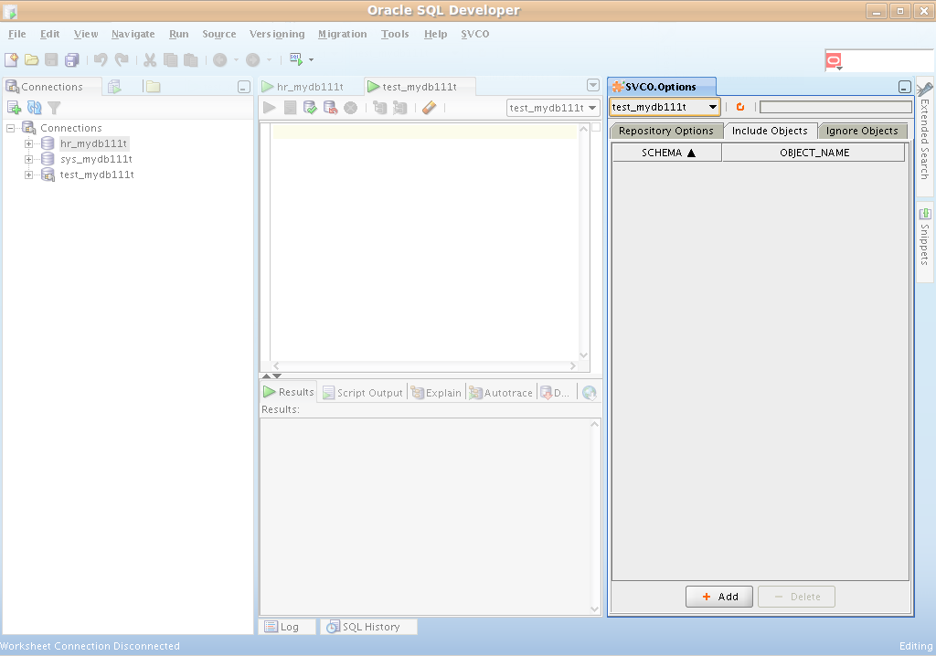 Select or create new connection where you would like to install SVCO, please login as SYS user.