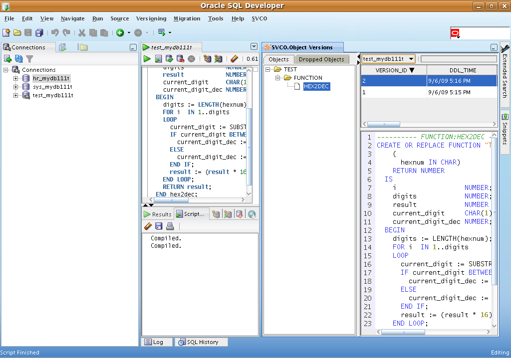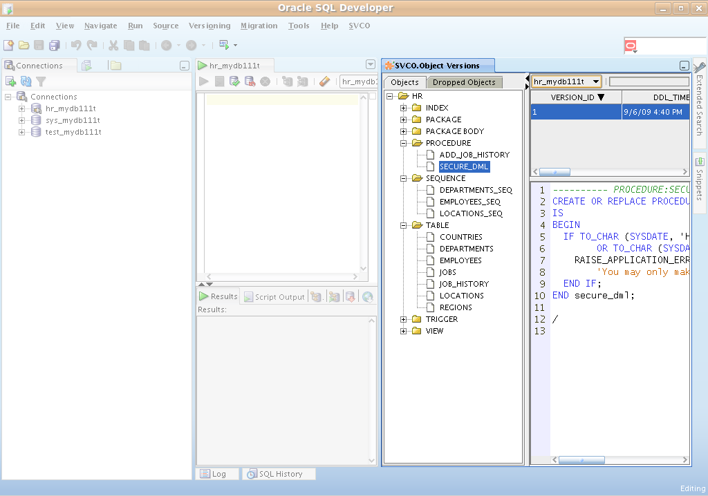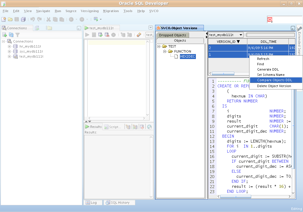 Start Oracle SQL Developer then select menu SVCO -> Browse Object Versions .